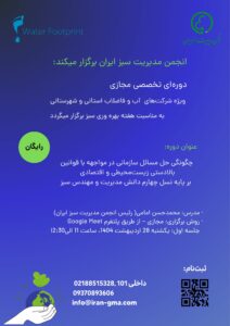 آموزش ها دوره آموزشی نظام یکپارچه مدیریت HSE، انرژی و کیفیتویژه مدیران و کارشناسان محترم HSE، انرژی، کیفیت، فنی و بهرهوری15 آبان ماه 1404- حضوری08:30-16:30هزینه دوره:37٬0۰۰٬۰۰۰ ریال ثبت نام نمایشگاه بین المللی BIG5 دبی3تا 6 آذر ماه ثبت نام دوره آموزشی مدیریت انرژی و محاسبه ردپای کربنویژه مدیران و کارشناسان حوزههای،انرژی، محیطزیست، HSE، تولید، انرژی، برنامه ریزی و سیستمهای مدیریتی23 مهرماه 1404- حضوری08:30-16:30هزینه دوره:23٬0۰۰٬۰۰۰ ریال تکمیل ظرفیت محتوا آموزشی دوره آموزشی تربیت ارزیابان سیستم مدیریت منابع انسانی سبز28 مهرماه 1404 - حضوری08:30-16:30هزینه دوره:33٬5۰۰٬۰۰۰ ریال ثبت نام دوره آموزشی هتل سبز27 شهریورماه 1404 - مجازی09:00-11:00هزینه دوره:9٬0۰۰٬۰۰۰ ریال برگزار شد بسته آموزشی هوش سبز(دوره دو روزه)ویژه مدیران و کارشناسان واحدها21,26 مردادماه 1404- مجازی8:30-10:30 برگزار شد دوره آموزشی سیستم مدیریت بلوغ HSE ویژه مدیران و کارشناسان واحد HSE19 مردادماه 1404- مجازی8:30-11:30 برگزار شد دوره آموزشی کوچ خودمان باشیمویژه مدیران واحدها/مدیران غیر منابع انسانی9 مردادماه 1404- مجازی8:30-12:00هزینه دوره:10٬5۰۰٬۰۰۰ ریال ثبت نام بسته آموزشی بازسازی روانی و احیا منابع انسانیویژه مدیران واحدها/مدیران غیر منابع انسانی5 مردادماه 1404- مجازی8:30-14:30هزینه بسته آموزشی:۱۵٬۰۰۰٬۰۰۰ ریالهزینه هر بخش:۶٬۰۰۰٬۰۰۰ ریال ثبت نام دوره آموزشی گزارش پایداریویژه شرکت های آب و فاضلاب19 خرداد ماه 1404- مجازی7:00-8:30برگزار شد محتوای آموزشی دوره تخصصی مجازی ویژه شرکت های آب و فاضلاب28 اردیبهشت ماه 1404- مجازیبرگزار شد محتوا آموزشی